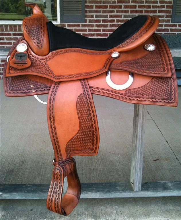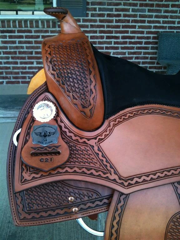 Basket weave/border tooling combo, all hand tooled like all our saddles